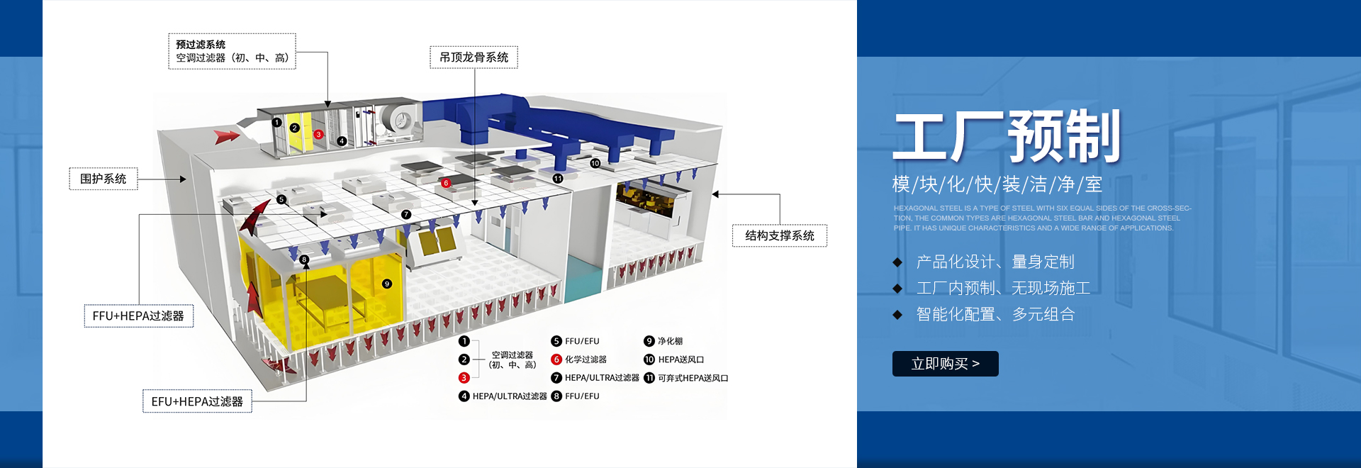 公司宗旨:致力于打造模块化、智能化、设备化、集成化的成套洁净室产品